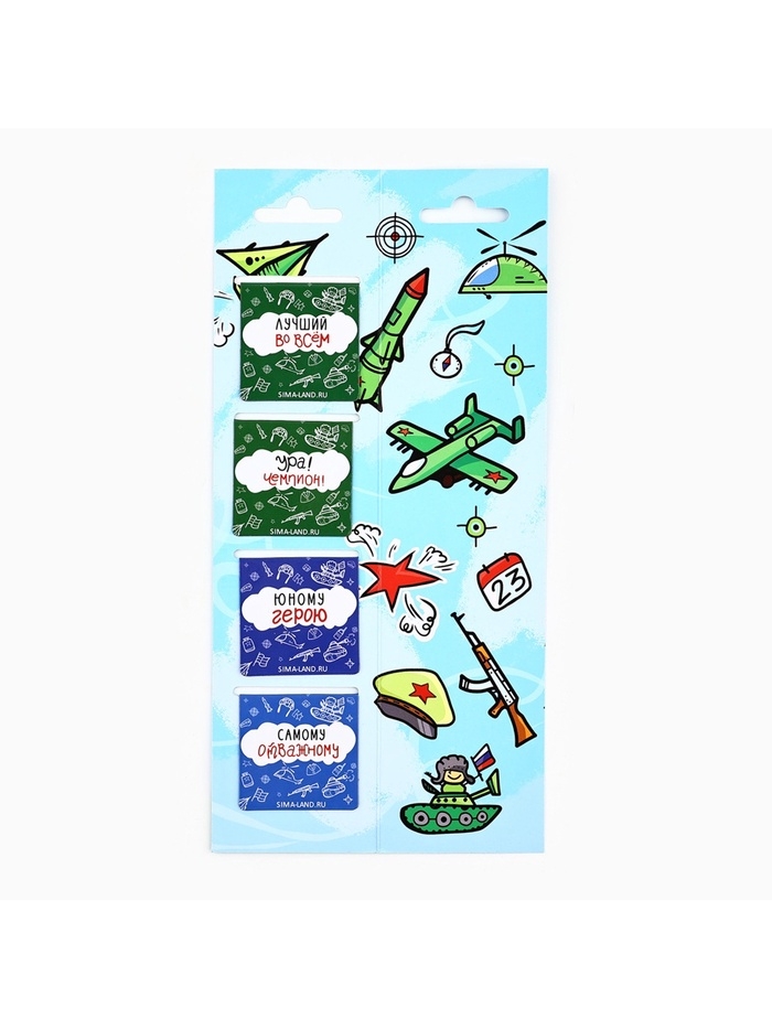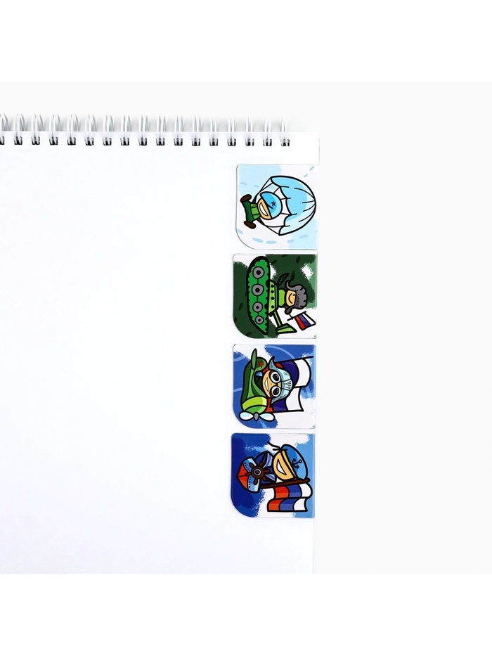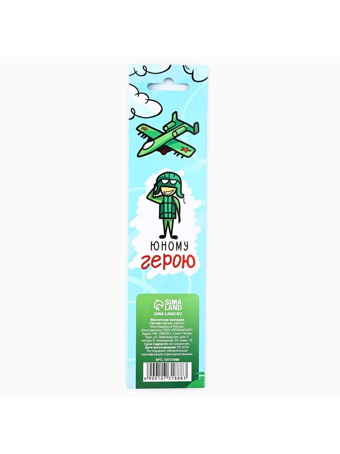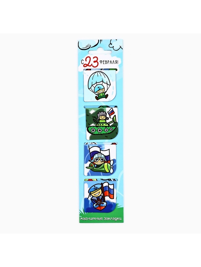 Магнитные закладки для книг, 4 шт. в открытке «Юному герою, с 23 февраля!»