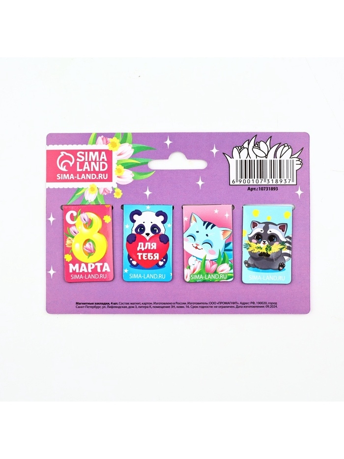 Магнитные закладки мини, 4 шт "С 8 марта"