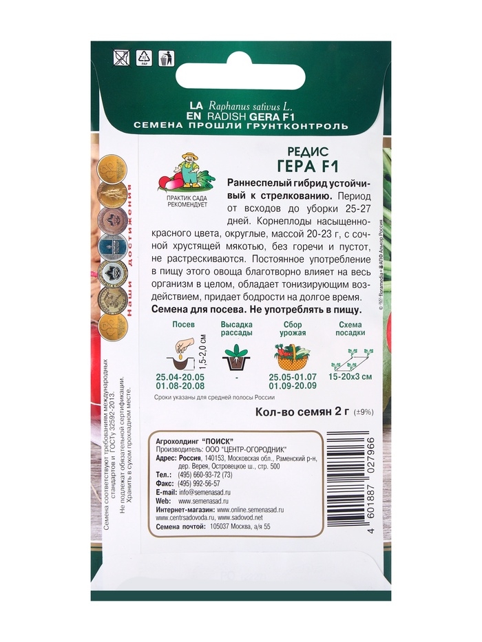 Редис гибрид Гера F1 — это идеальный выбор для тех, кто ценит свежесть и универсальность в выращивании овощей. Такой редис станет украшением вашего сада и отличным дополнением к летнему столу. Выращивайте его легко и без лишних хлопот в открытом грунте, используя семена в течение агрономического срока годности, который достигает 4 лет.