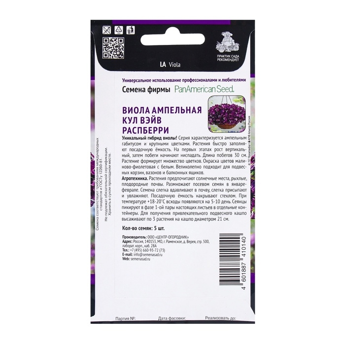 Семена цветов Виола ампельная Кул Вэйв Распберри, 5шт