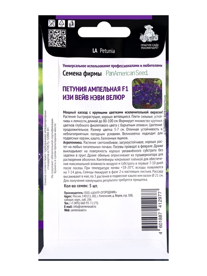 Петуния ампельная F1 Изи Вейв Нэви Велюр — это изящное украшение для вашего сада или балкона. Её насыщенные фиолетовые цветы создадут удивительную атмосферу яркости и комфорта, привлекая к себе внимание. Это растение станет идеальным выбором для создания цветников и клумб, добавляя нотки элегантности в ваш ландшафтный дизайн.