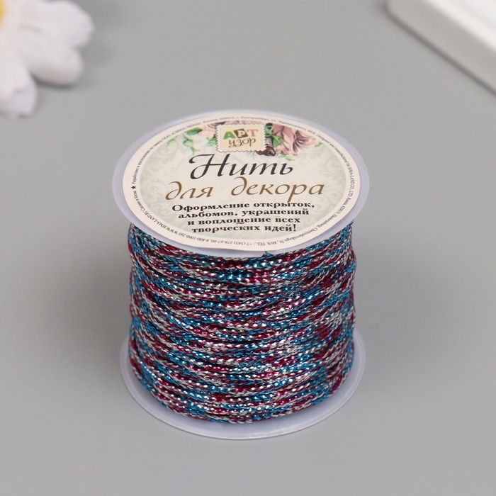 Сутажный шнур на бобине "Синий фиолет" намотка 15 м толщина 2 мм 4,3х4,7х4,7 см