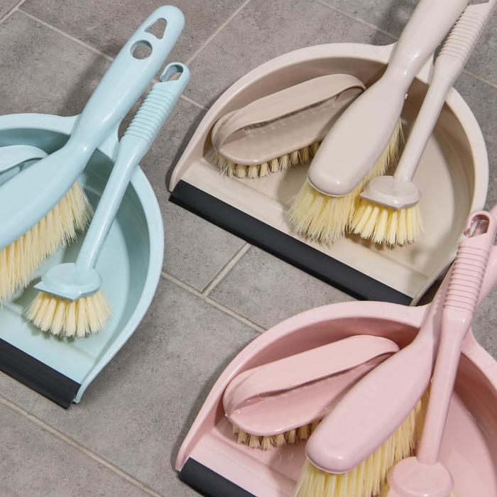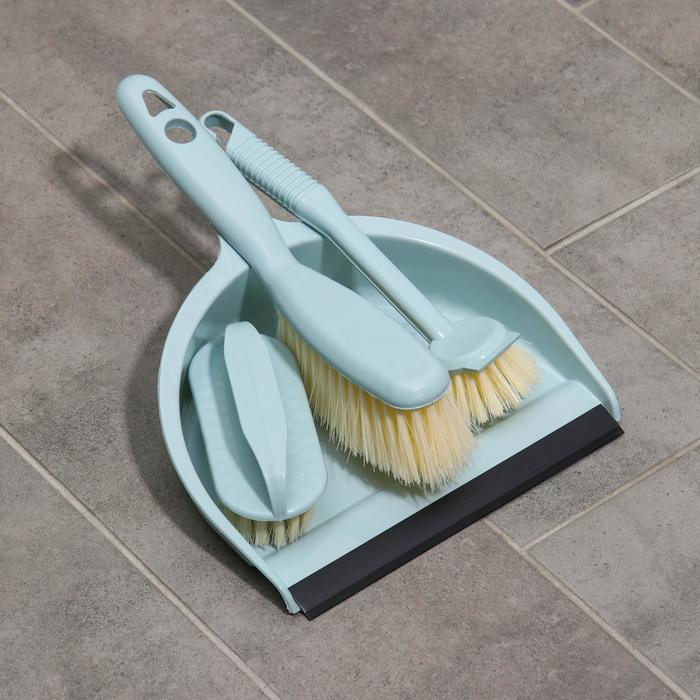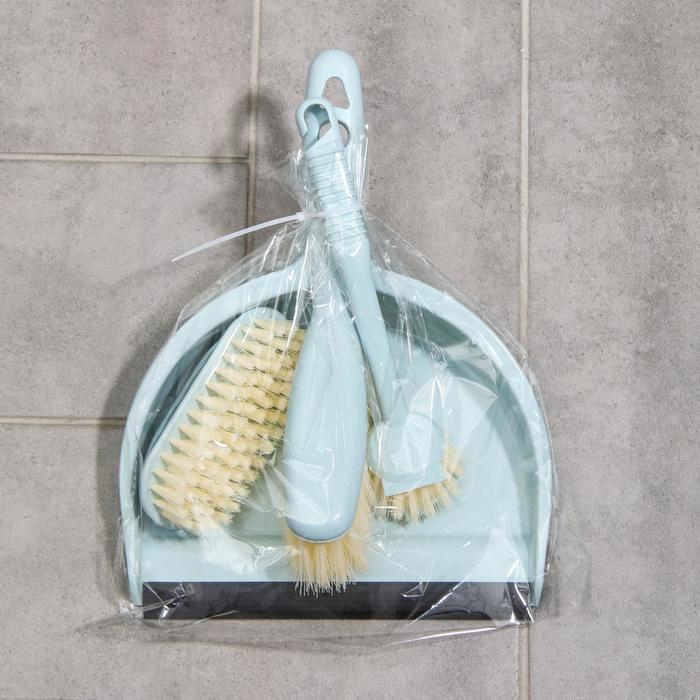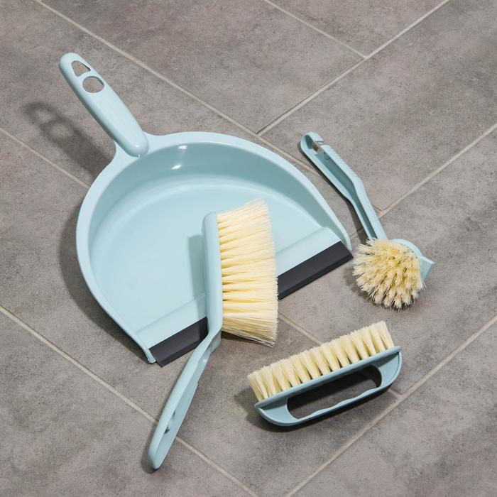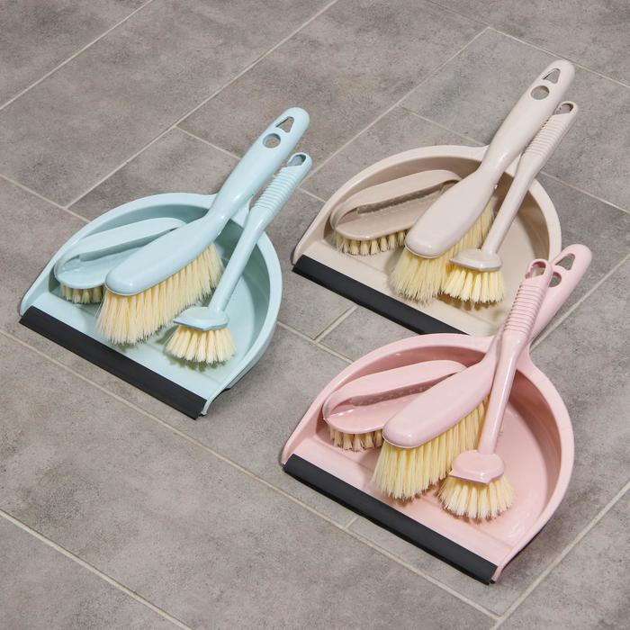 Щётки для уборки Доляна, 4 предмета: совок, 3 щётки, 30×21×12 см, цвет МИКС