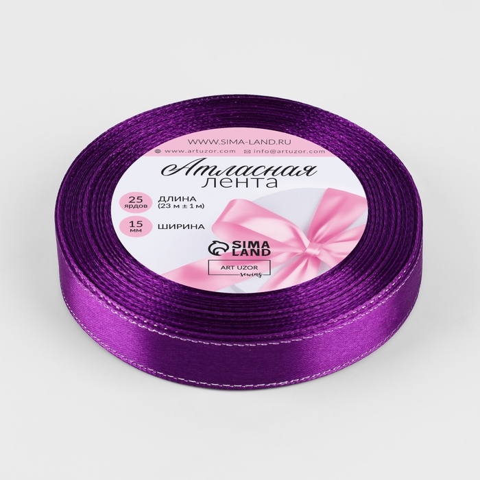 Лента атласная «Серебряные нити», 15 мм × 23 ± 1 м, цвет фиолетовый №35