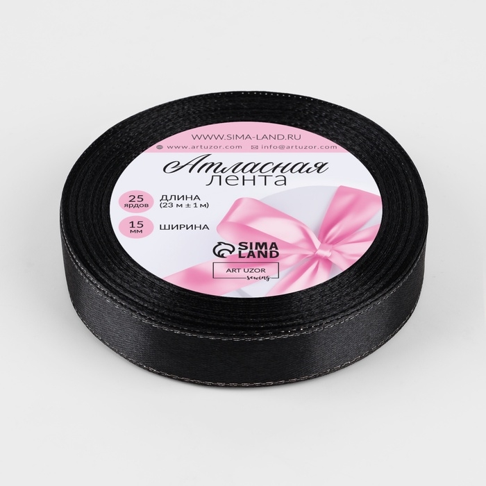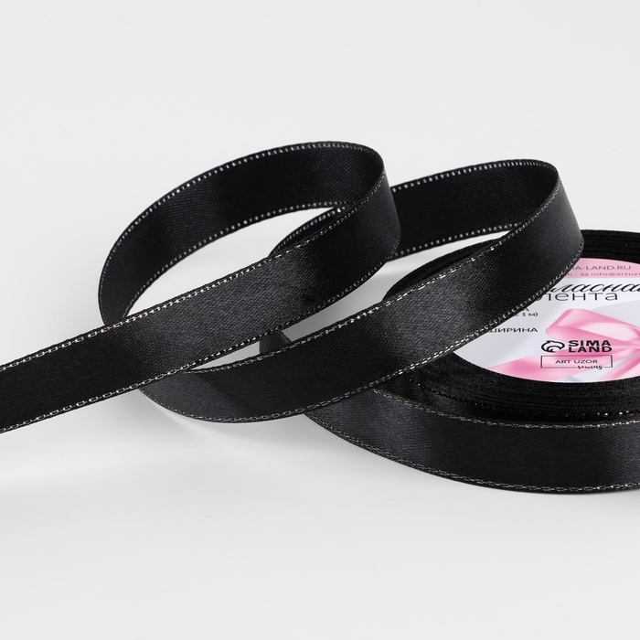 Лента атласная «Серебряные нити», 15 мм × 23 ± 1 м, цвет чёрный №39