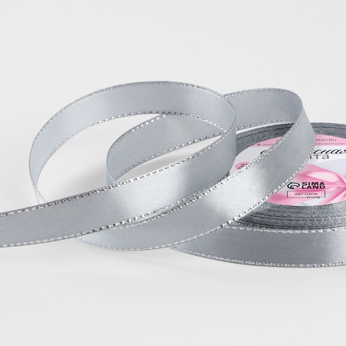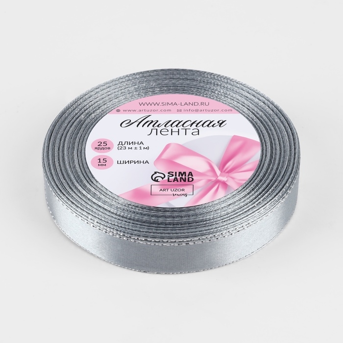 Лента атласная «Серебряные нити», 15 мм × 23 ± 1 м, цвет серый №59