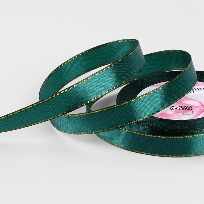 Лента атласная «Золотые нити», 15 мм × 23 ± 1 м, цвет изумрудный №70