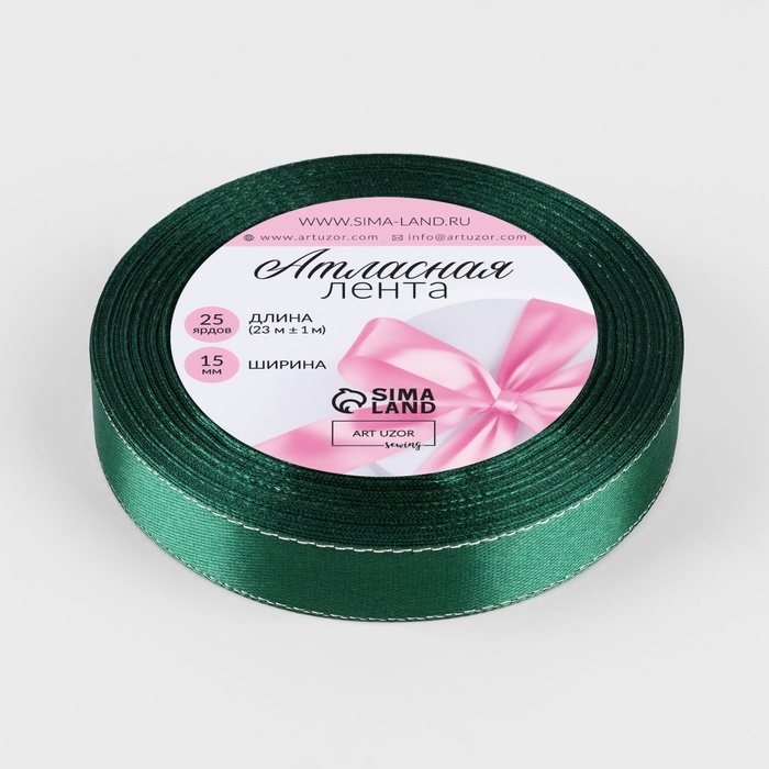 Лента атласная «Золотые нити», 15 мм × 23 ± 1 м, цвет зелёный №049