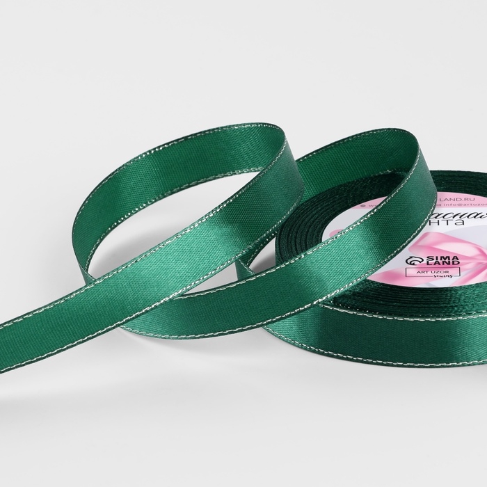 Лента атласная «Серебряные нити», 15 мм × 23 ± 1 м, цвет изумрудный №70