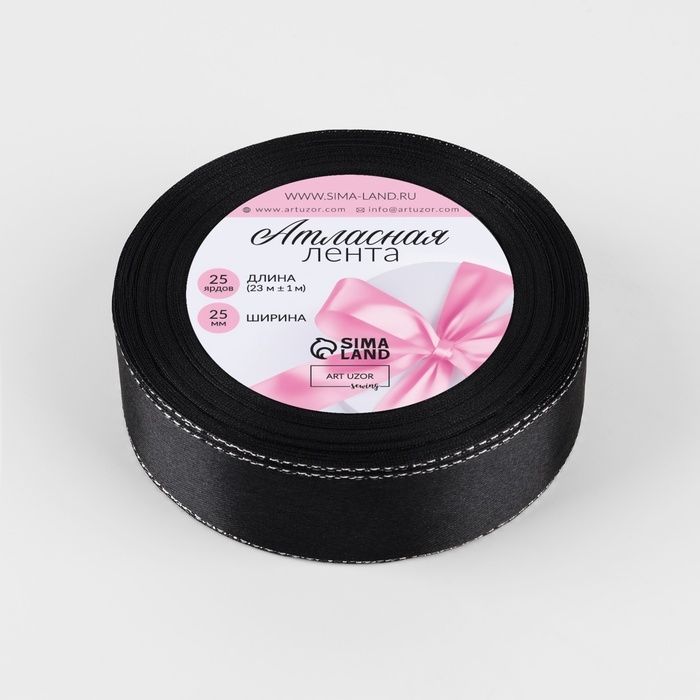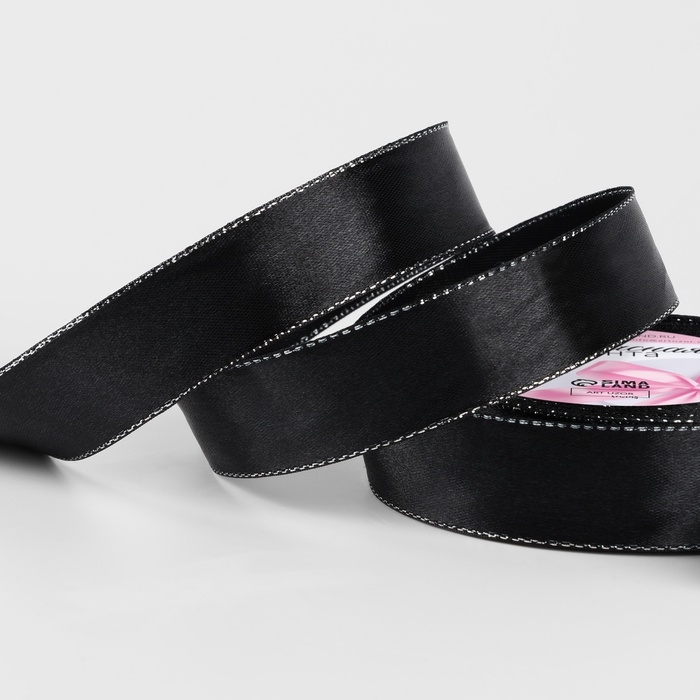 Лента атласная «Серебряные нити», 25 мм × 23 ± 1 м, цвет чёрный №39