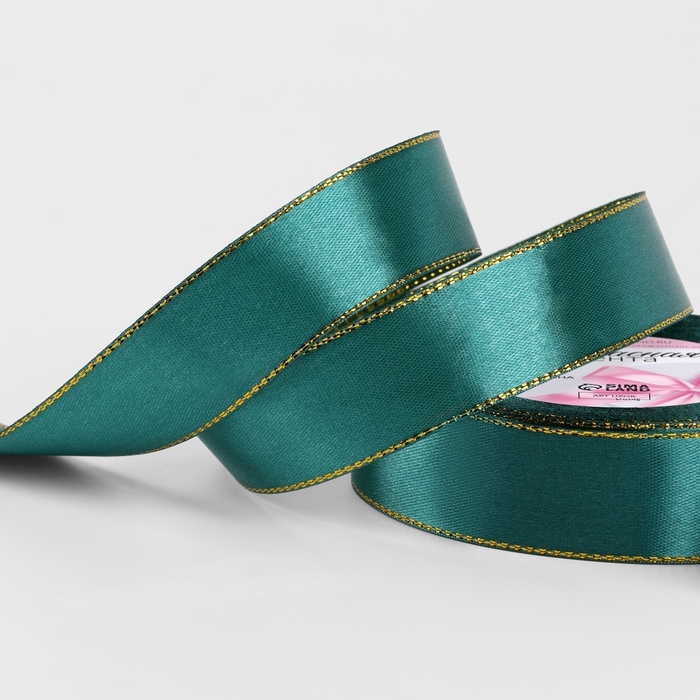 Лента атласная «Золотые нити», 25 мм × 23 ± 1 м, цвет изумрудный №70