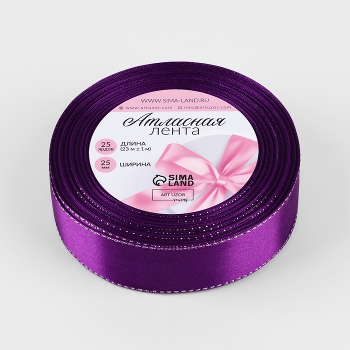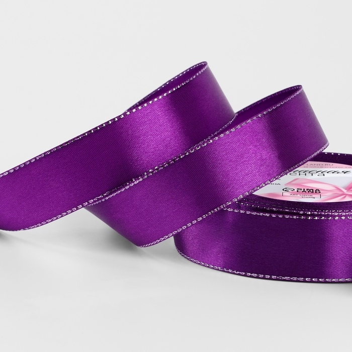 Лента атласная «Серебряные нити», 25 мм × 23 ± 1 м, цвет фиолетовый №35