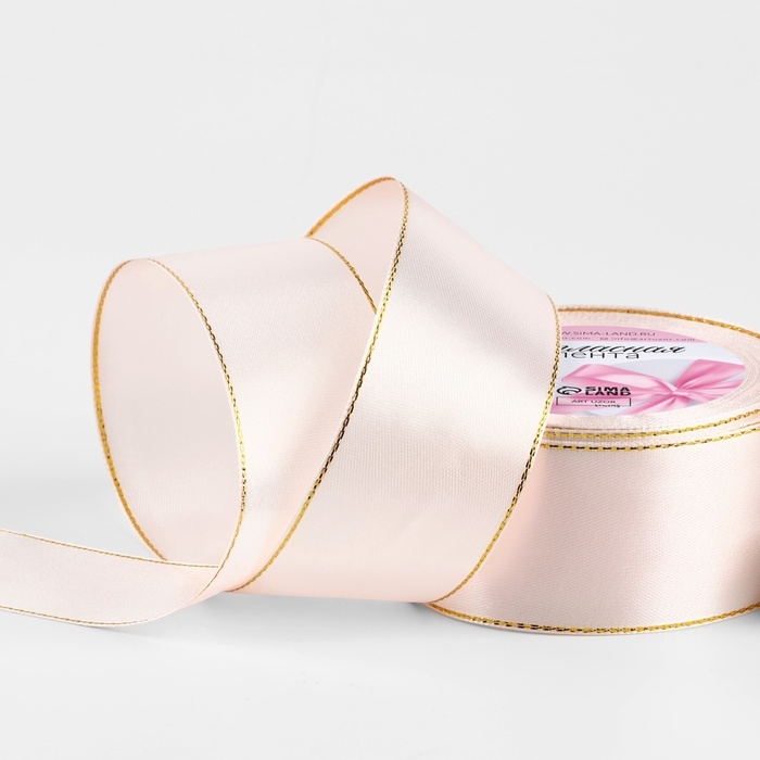 Лента атласная «Золотые нити», 25 мм × 23 ± 1 м, цвет розовый №04