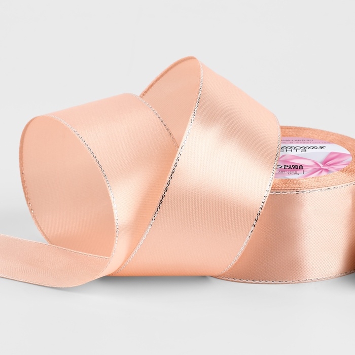 Лента атласная «Серебряные нити», 40 мм × 23 ± 1 м, цвет розовое золото 1007