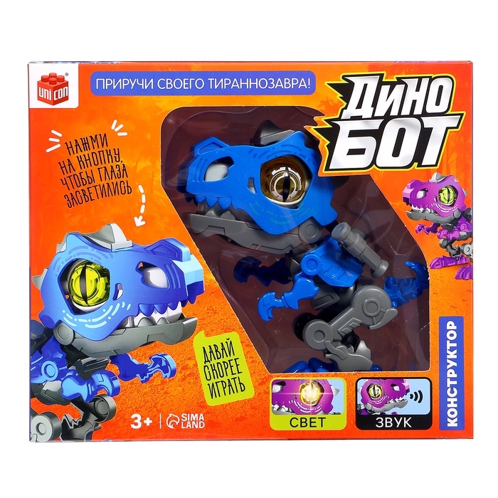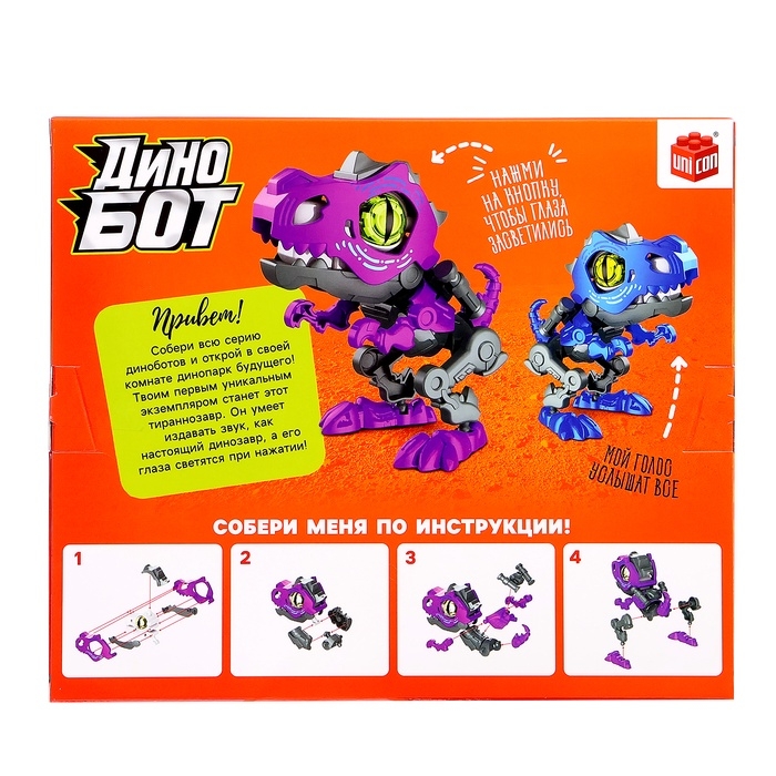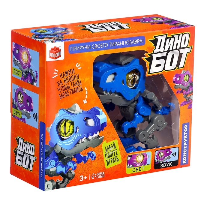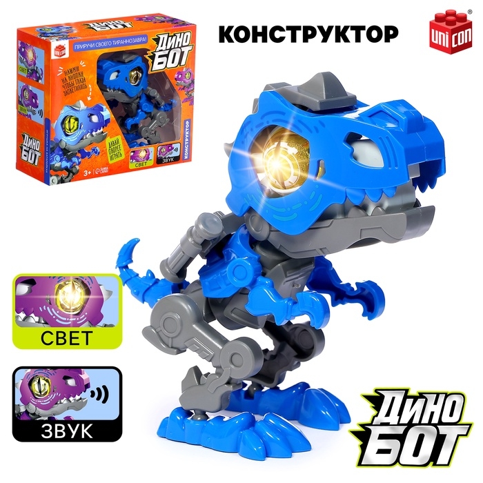 Электронный конструктор динозавр «Динобот», со звуком и подсветкой, на батарейках, цвет МИКС