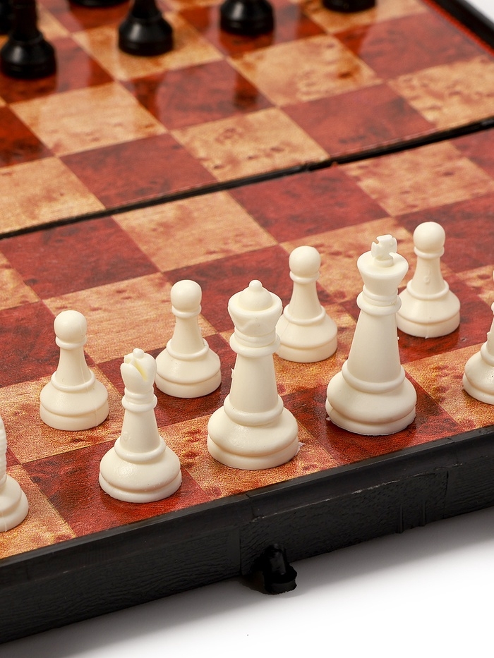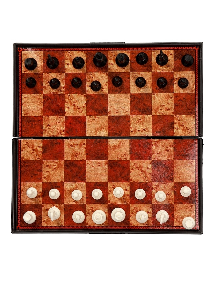 Шахматы 19 х 19 см, король h-3.3 см, d-1.5 см, доска и фигуры пластик