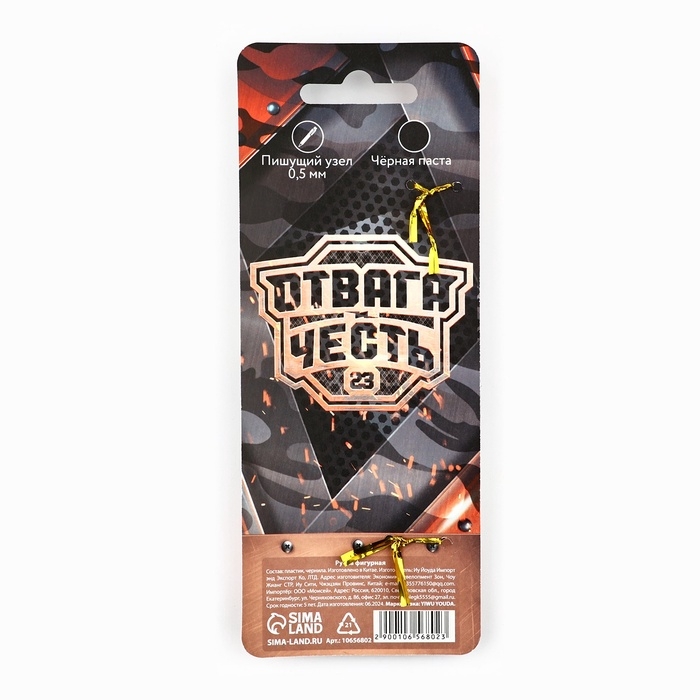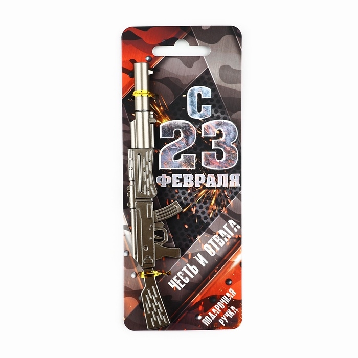 Ручка пистолет "с 23 февраля, честь и отвага", пластик, на подложке