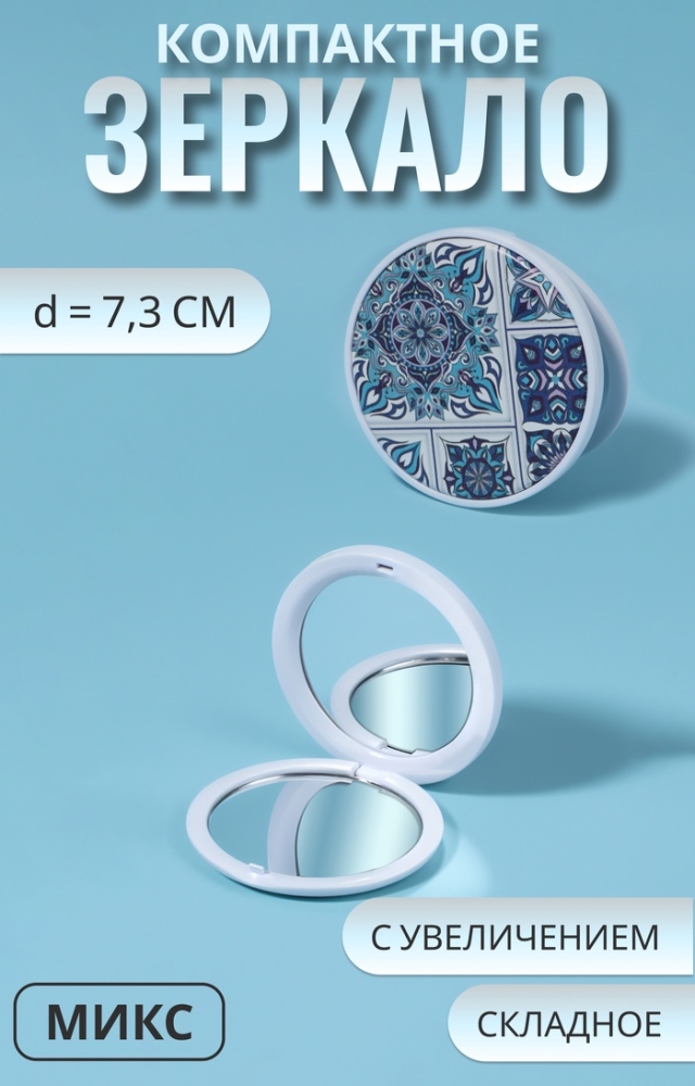 Зеркало складное «Витраж», d = 7,3 см, цвет голубой