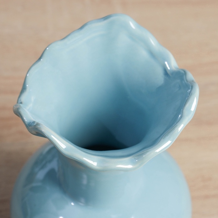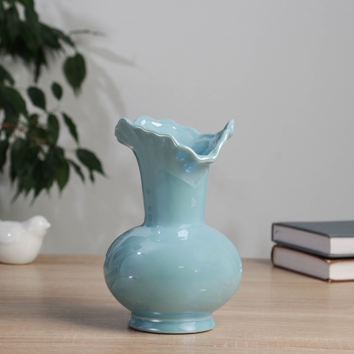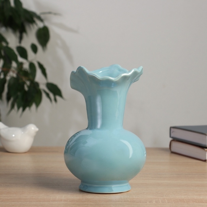 Керамическая ваза для цветов, сухоцветов «Изекил», настольная, d-10 см, h-17 см, голубой