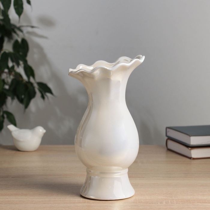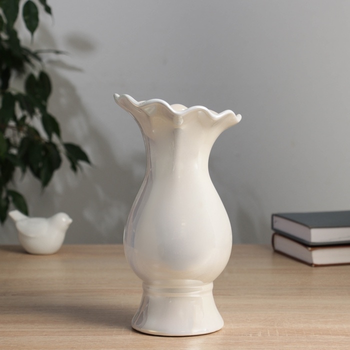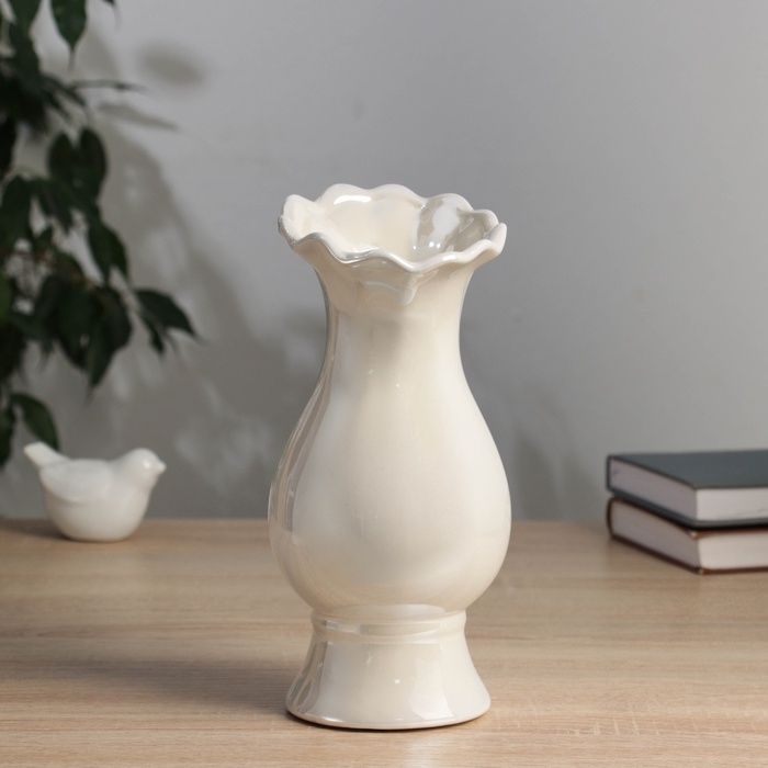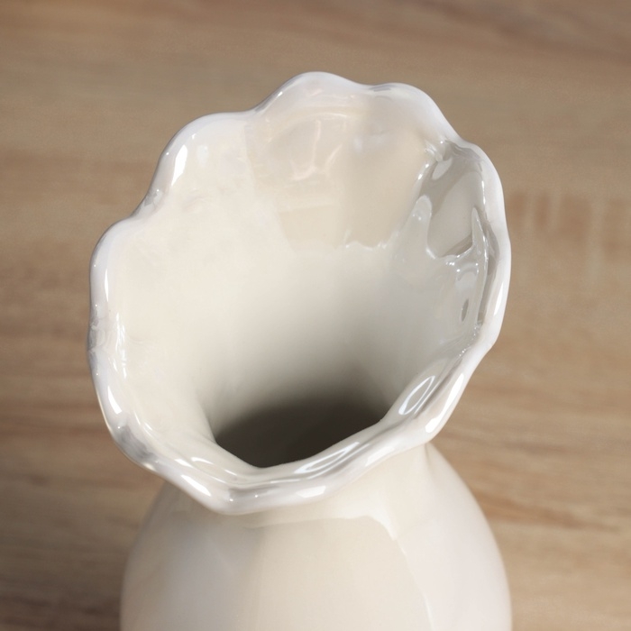 Керамическая ваза для цветов, сухоцветов «Филикс», настольная, d отв.- 6 см, 22.5×9 см, белый
