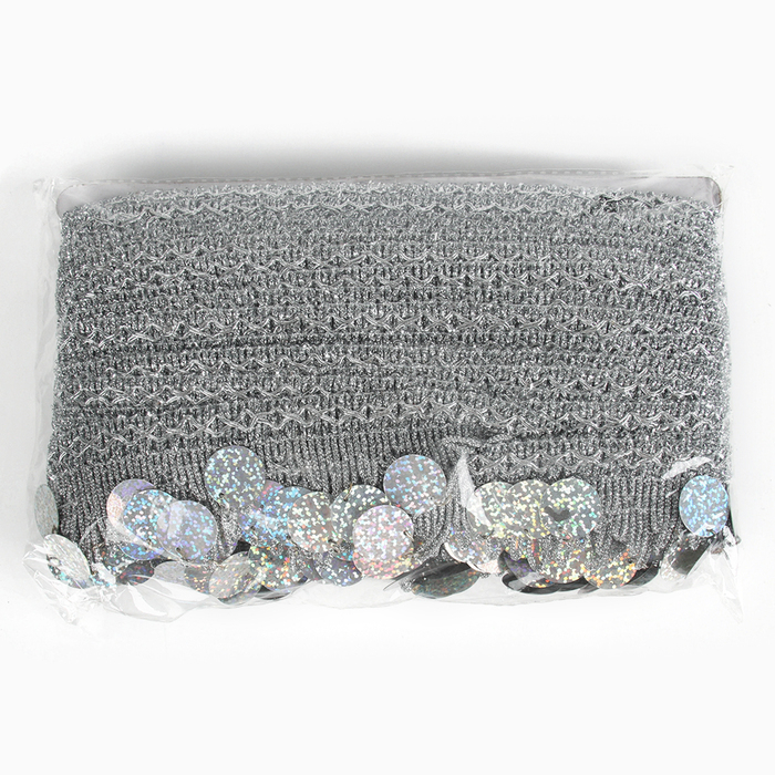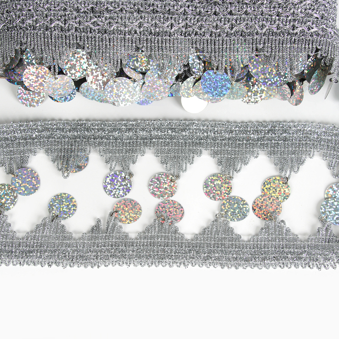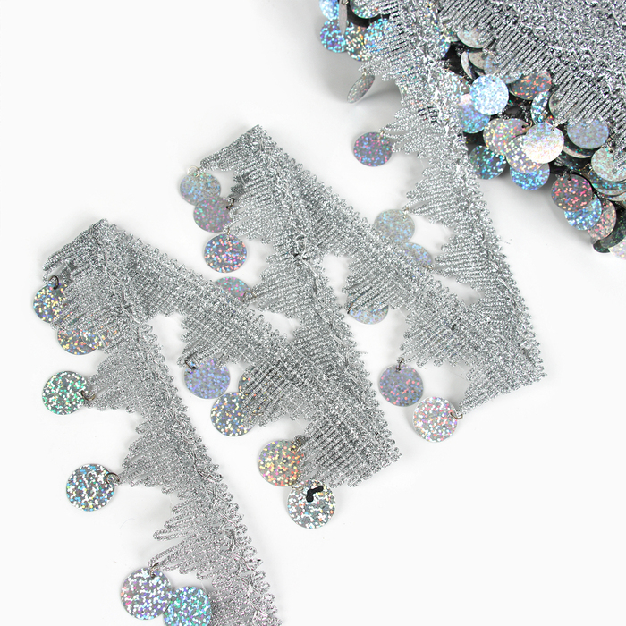 Тесьма с монетками, голография, серебристые уголки, в рулоне 20 метров