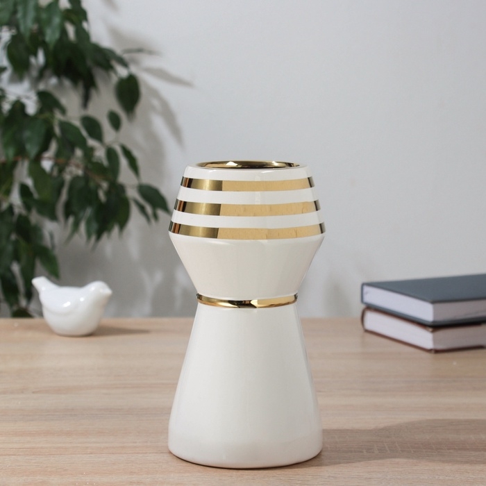 Керамическая ваза для цветов, сухоцветов «Гарет», настольная, d-8 см, 20×10.5 см, белый
