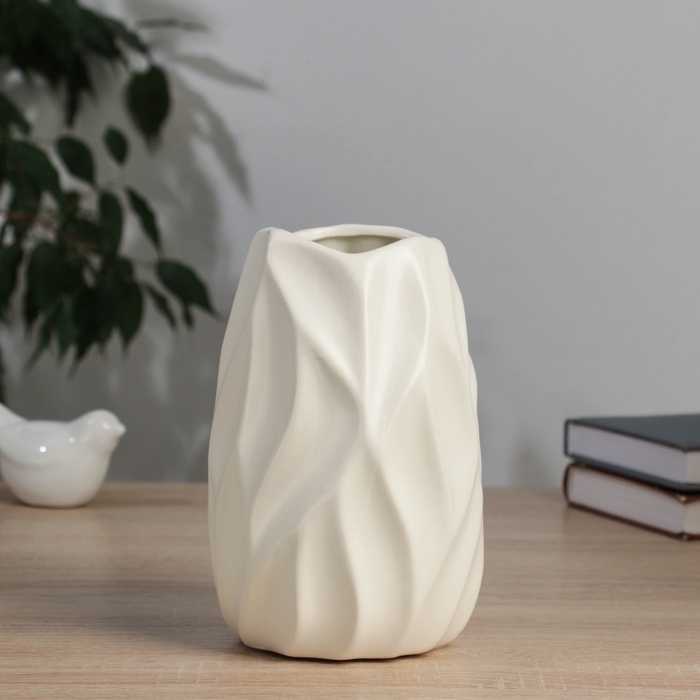 Керамическая ваза декоративная настольная «Грэйем», для цветов, сухоцветов, d-7 см, 17.5×10 см, белый