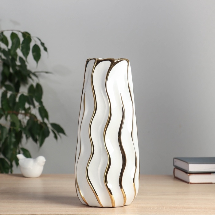 Керамическая ваза декоративная настольная «Грант элит», для цветов, сухоцветов, d-7.5 см, 29×12 см, белый