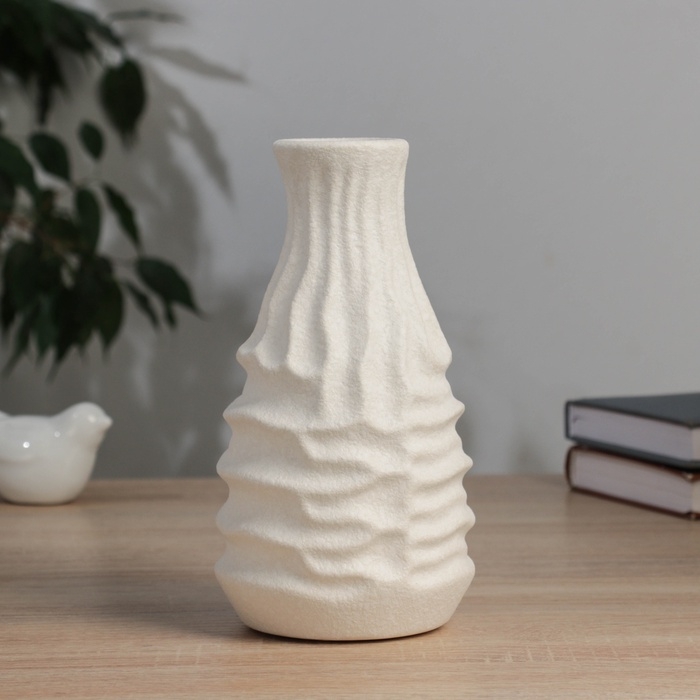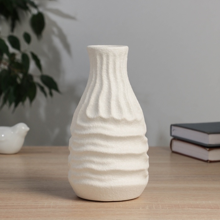 Керамическая ваза декоративная настольная «Нейтен», для цветов, сухоцветов, d-5 см, 20×10.5 см, белый