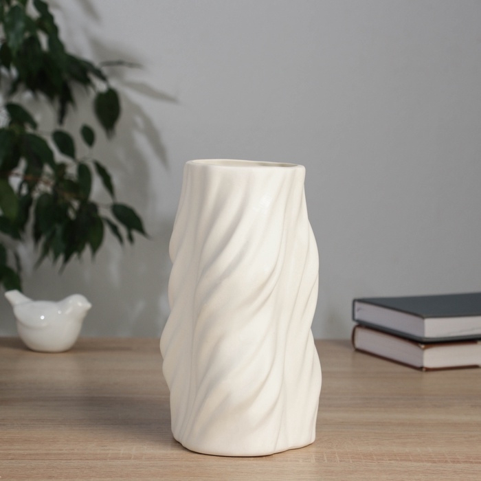 Керамическая ваза декоративная настольная «Оскар», для цветов, сухоцветов, d-8 см, 20×10.5 см, белый