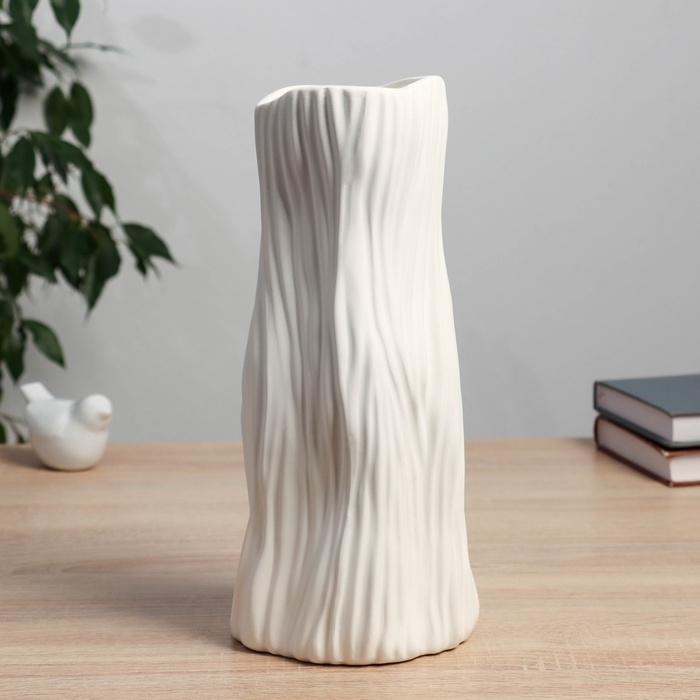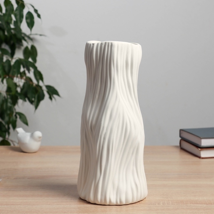 Керамическая ваза декоративная настольная «Винсент», для цветов, сухоцветов, d-8 см, 29×12.5 см, белый