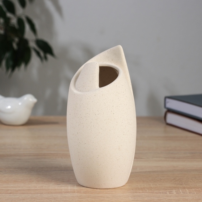 Керамическая ваза декоративная настольная «Уилстон», для цветов, сухоцветов, d-4.5см, 17×9.5 см, бежевый