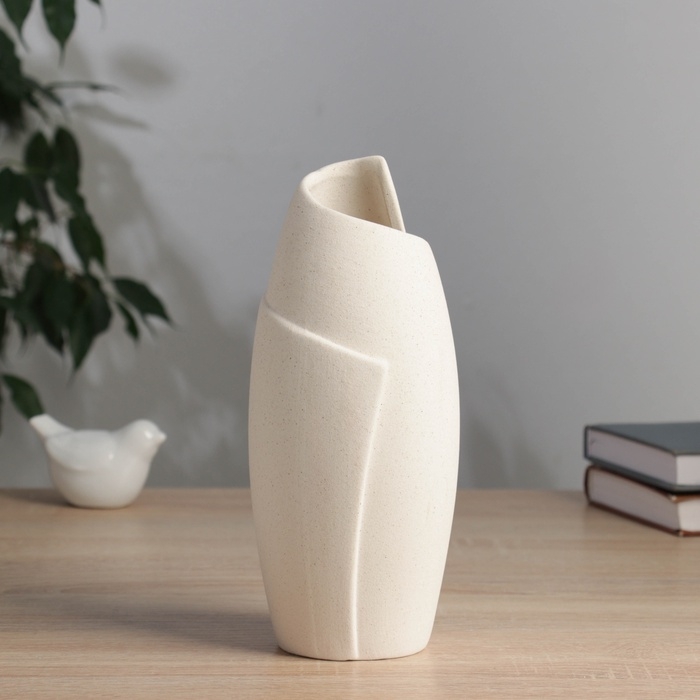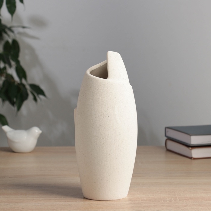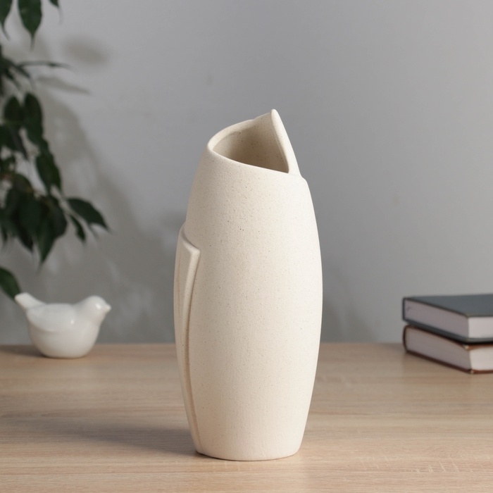 Керамическая ваза декоративная настольная «Уилстон», для цветов, сухоцветов, d-5 см, 22×9.5 см, бежевый