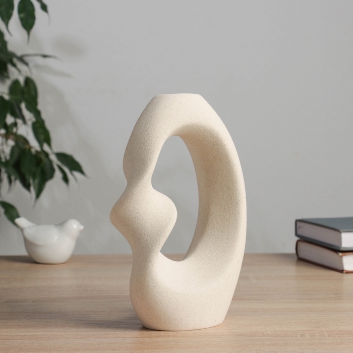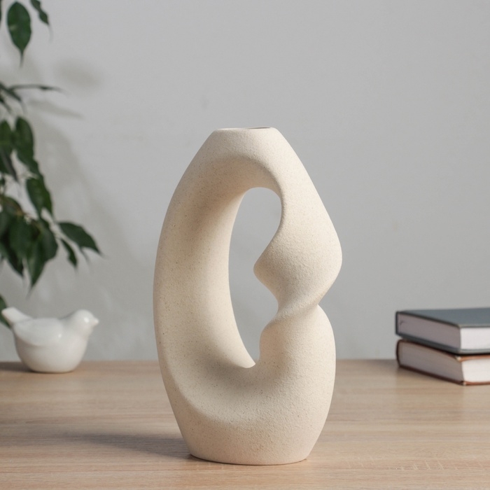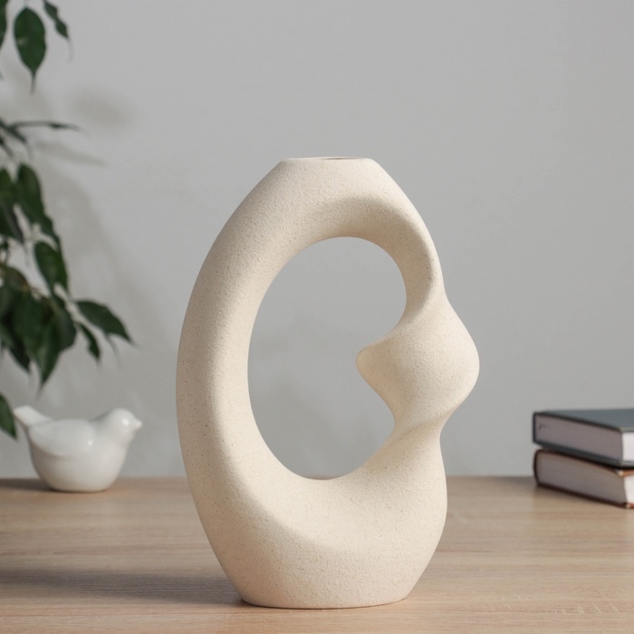 Керамическая ваза декоративная настольная «Закари», для цветов, сухоцветов, d-3 см, 21×14 см, бежевый