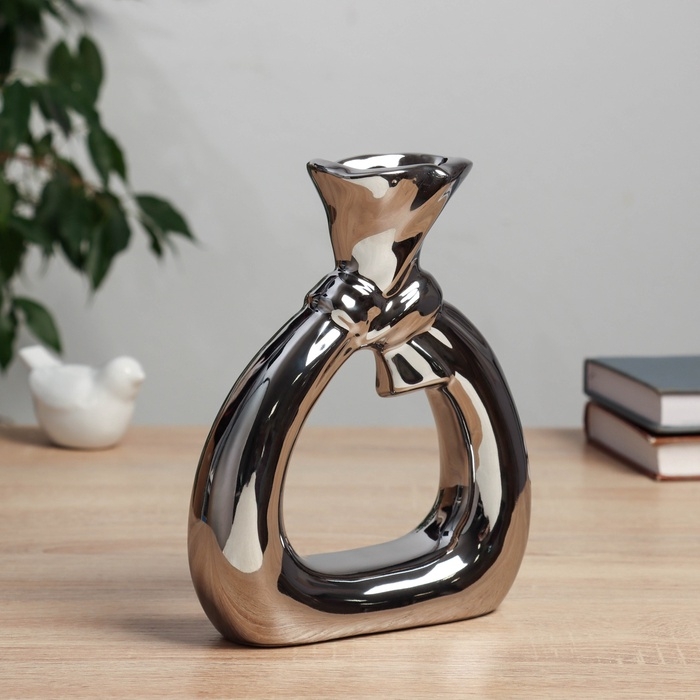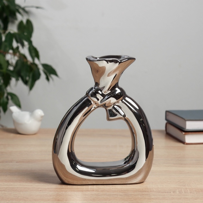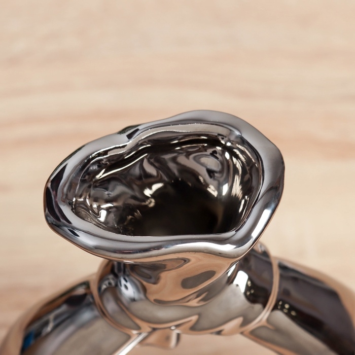 Керамическая ваза декоративная настольная «Шейн», для цветов, сухоцветов, d отв.- 3 см, 19×15 см, серебро