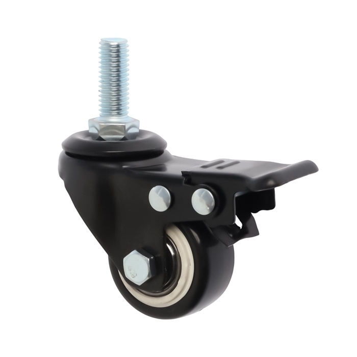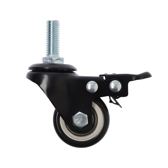 Колесо мебельное ТУНДРА, d=40 мм, поворотное, с футоркой 10х25 мм, с тормозом, черное
