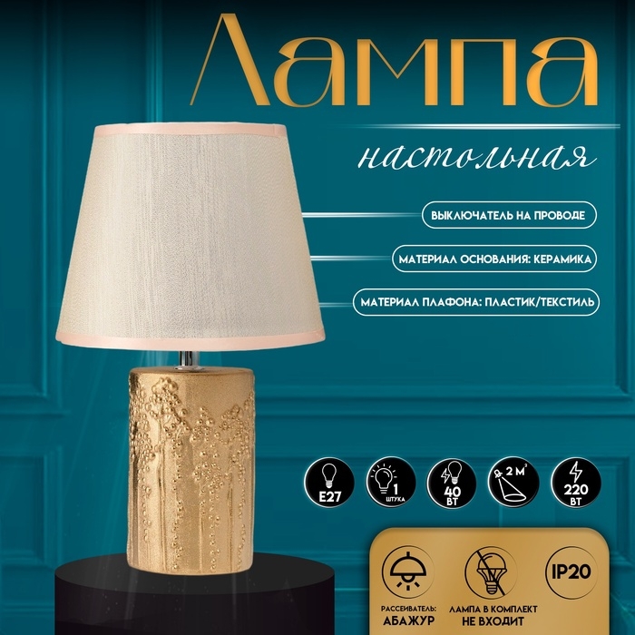 Настольная лампа с абажуром RISALUX «Фруктовый сад», 1×40 Вт, Е27, золото, 19.5×19.5×33 см