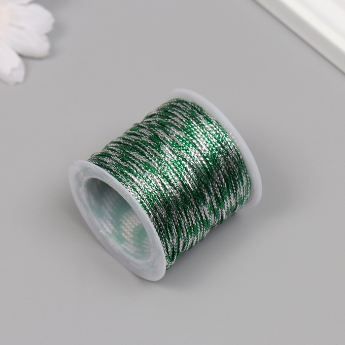 Сутажный шнур на бобине "Зелёный с серебром" намотка 15 м толщина 2 мм 4,3х4,7х4,7 см