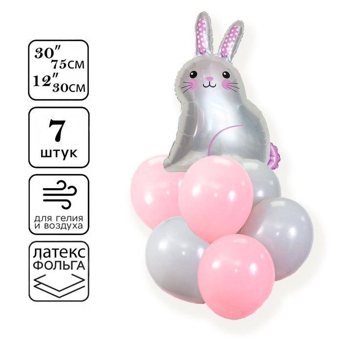 Воздушные шары «Заяц», набор 7 шт.: 1 фольгированная фигура, 6 латексных