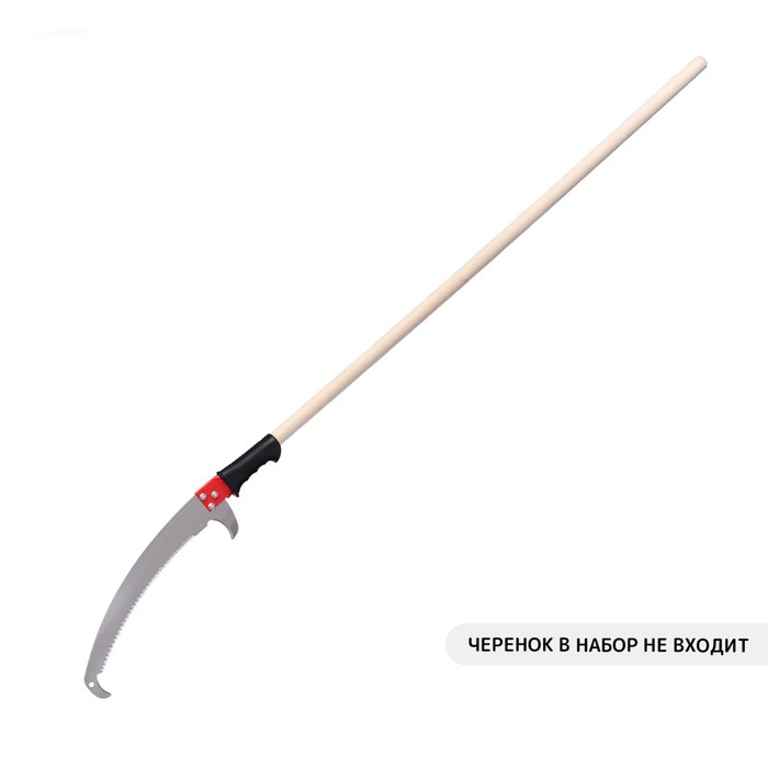 - К ручке можно прикрепить черенок диаметром 29 мм, который поможет достать и отпилить высокие ветки без стремянки.