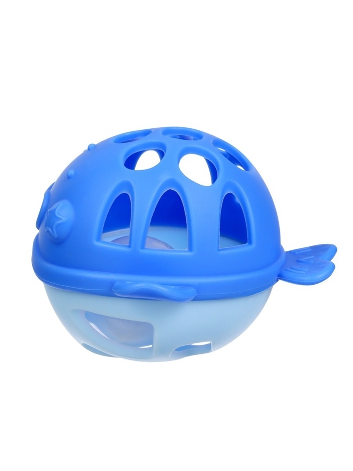 Прорезыватель силиконовый для зубов с погремушкой Крошка Я «Рыбка», в кейсе, синий