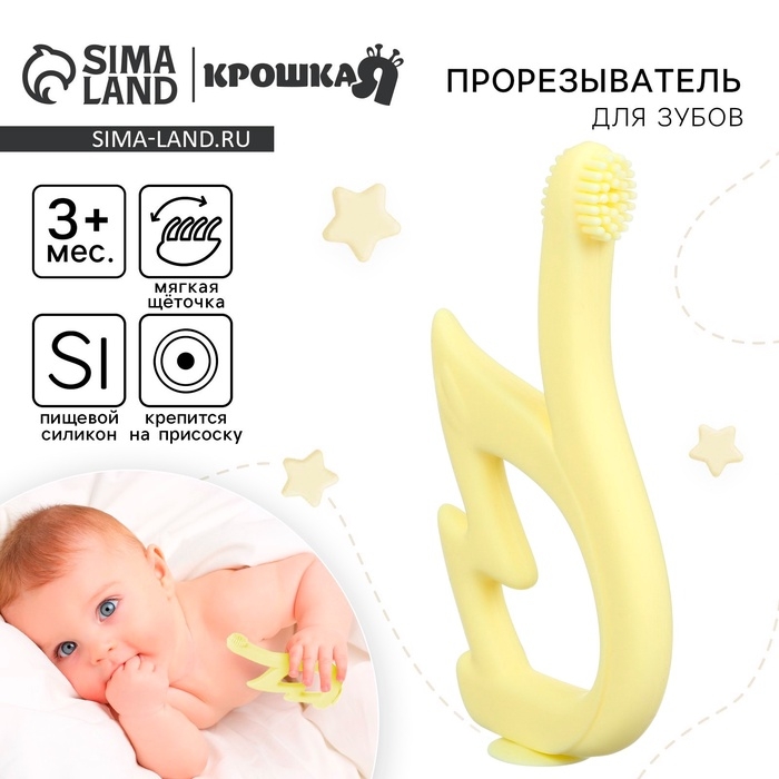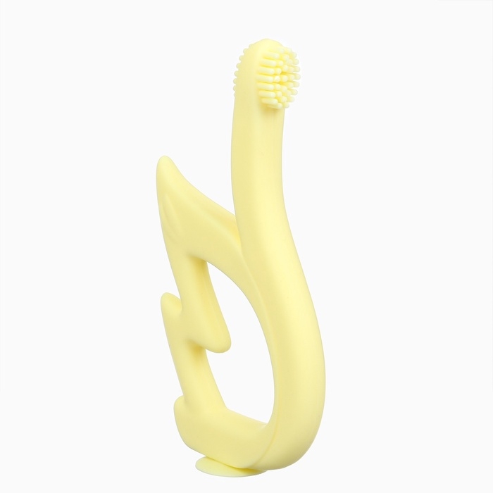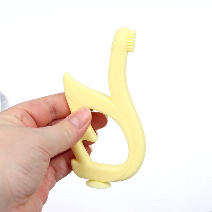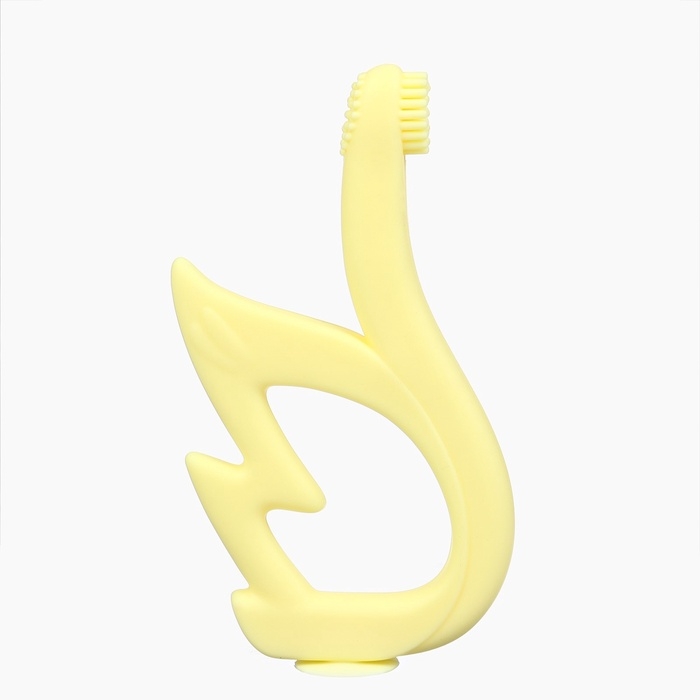 Прорезыватель силиконовый для зубов Крошка Я «Лебедь», щеточка, на присоске, желтый