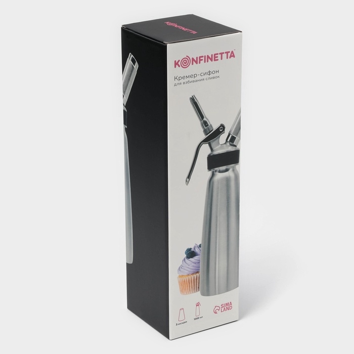 Кремер - сифон для взбивания сливок KONFINETTA, 1 л, 3 насадки, алюминий, серебристый