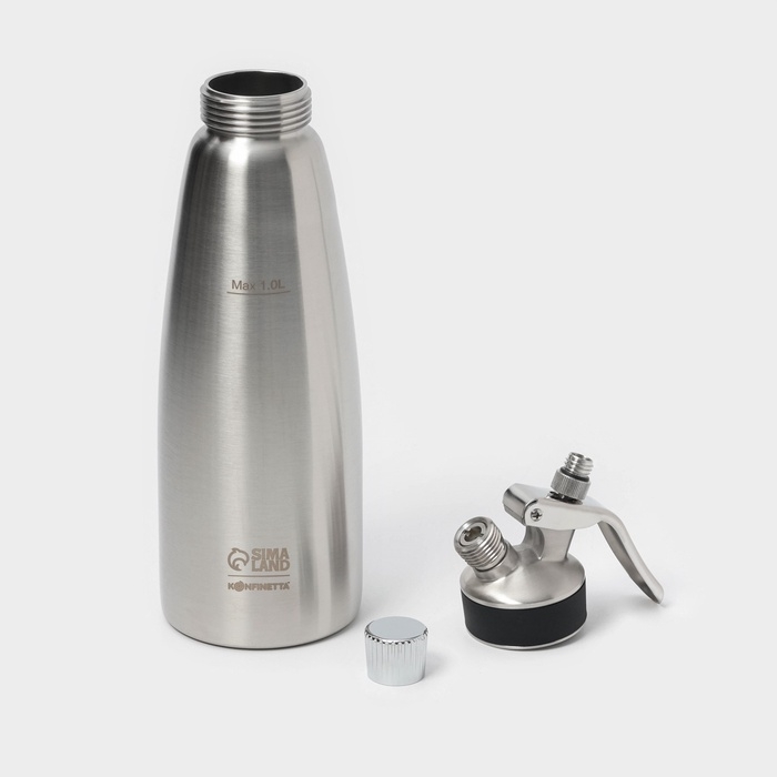 Кремер - сифон для взбивания сливок KONFINETTA, 1 л, 3 насадки, алюминий, серебристый