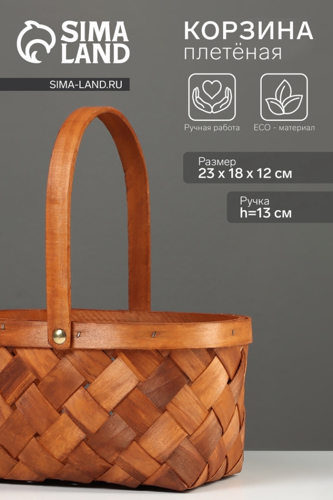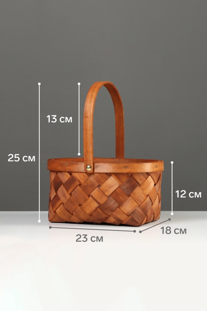Корзина плетёная, 23×18×12 см, ручка h=13 см, ива, натуральный цвет