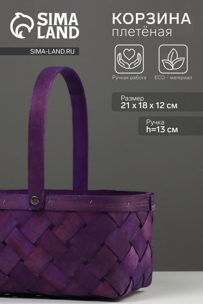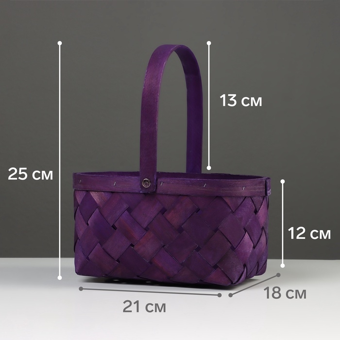 Корзина плетёная, 23×18×12 см, ручка h=13 см, ива, фиолетовая