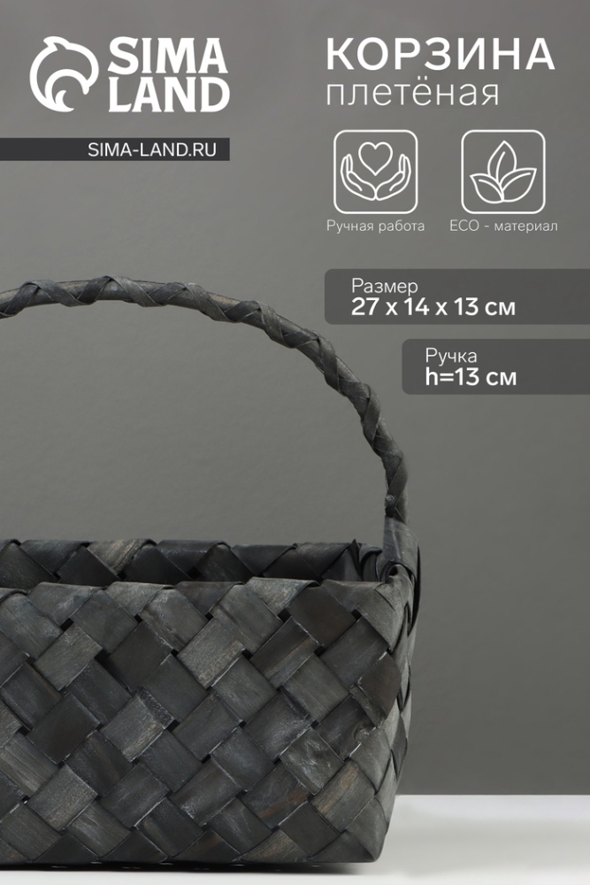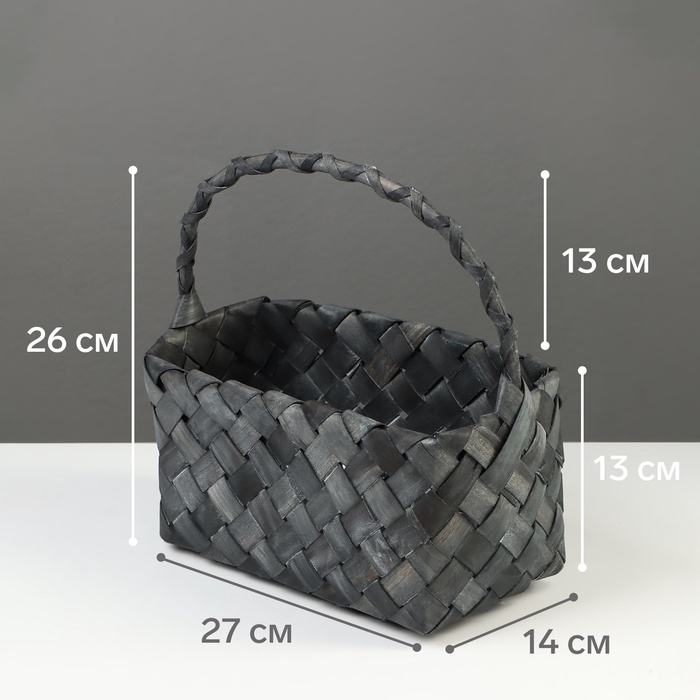 Корзина плетёная, 27×14×13 см, плетёная ручка h=13 см, ива, серая