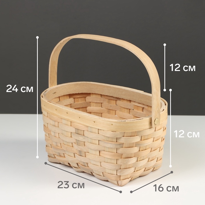 Корзина плетёная, 23×16×12 см, ручка h=12 см, ива, натуральный цвет