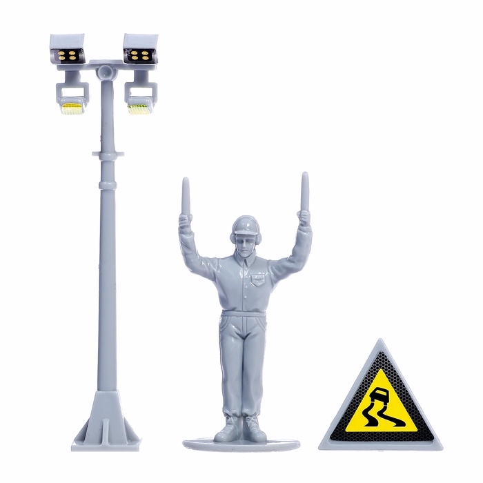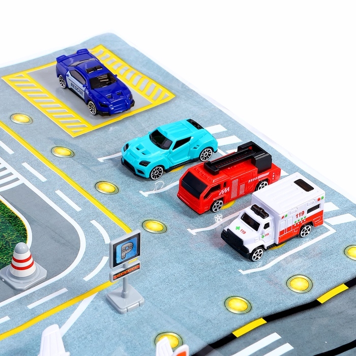 - В комплект входят красивые машинки, самолёты, вертолёт, дорожные знаки и наклейки, которые дополняют игровой процесс и делают его ещё интереснее.
