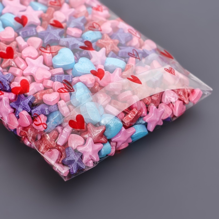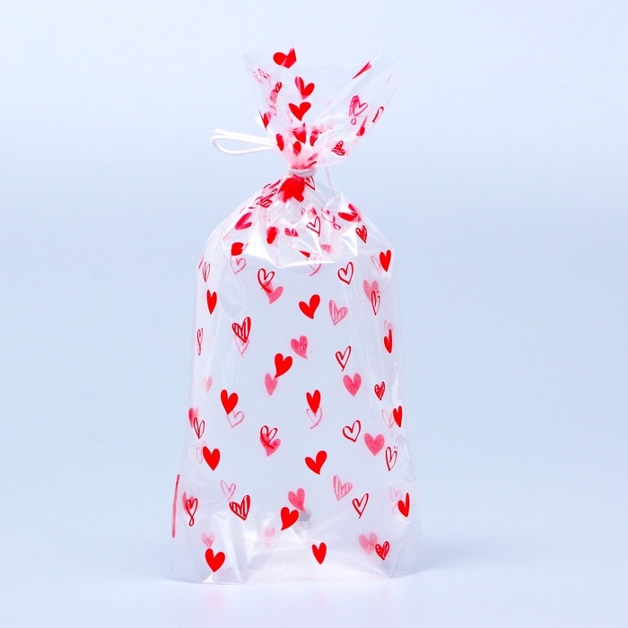 Пакет фасовочный БОПП, с донной складкой, "Сердца красные" 9*19 см набор 50 шт